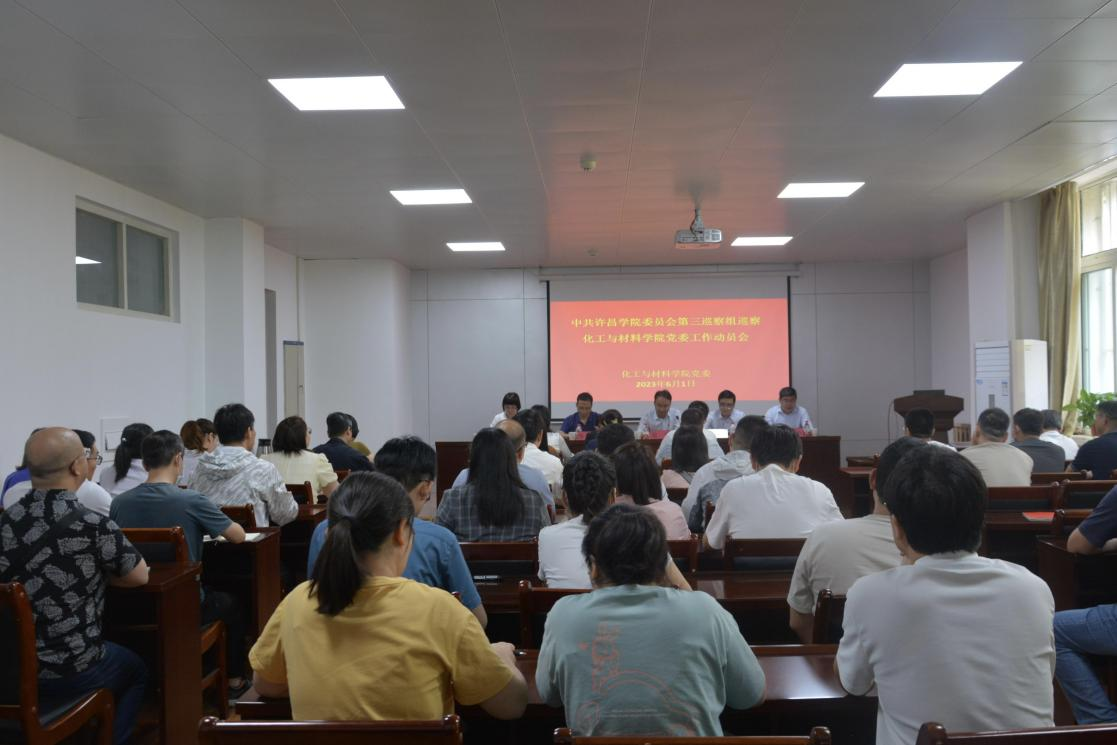 2023年6月1日上午,校党委第三巡察组巡察化工与材料学院党委工作动员会在化材楼S302报告厅召开。校党委第三巡察组组长高凯,副组长郗磊磊、陈化宇,成员吕欣、田俊萍、姜萌出席会议。全体院领导班子成员、科级干部、党支部书记、博士教师、无党派和民主党派教师代表、学生代表参加会议。会议由我院党委书记许志红主持。