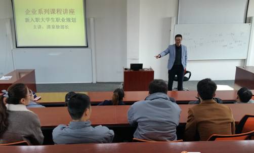 为提升实习质量,特聘园区内多名工程技术人员作为兼职教师,与校内教师共同指导学生毕业论文(设计)、并参与《企业系列课程讲座》教学工作。2017年3月6日,实习学生和部分往届毕业生在滨海沿海工业园区普信制药有限公司聆听了普信制药高工杨春的“工程师科技研发能力的培养”、清泉化学股份徐之福部长的“新入职大学生职业规划”等专题讲座。