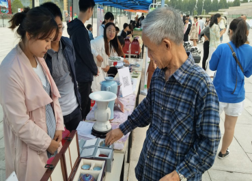 活动期间,不断有社会人士和老校友前来了解有关现代钧瓷和电池回收等方面的相关知识。其中一位阿姨问到现代钧瓷与传统陶瓷有哪些区别时,可以看出阿姨对现代科学技术的求知欲十分强烈。对此纳米科普社的相关人员讲解道:“钧瓷在制定过程中主要有材料加工、造型设计、施釉、烧制、出窑。而现代钧瓷特有的颜色则是由于在材料加工和施釉的过程中增加了一些纳米材料,从而在根本上使颜色更加饱满和纯粹,也使得其更加有美感。在一定意义上,现代钧瓷可以说是现代科技和古人智慧相结合的完美体现。”