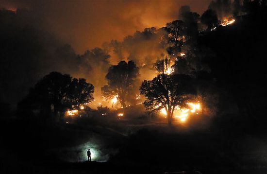 美国“黄金之州”因连续4年的严重干旱而遭受重创。虽然当地人和野生动物努力适应这种干旱期,野火的发生频率仍在不断增加。比如这场8月发生在克里尔雷克的火灾。图片来源:Justin Sullivan/Getty