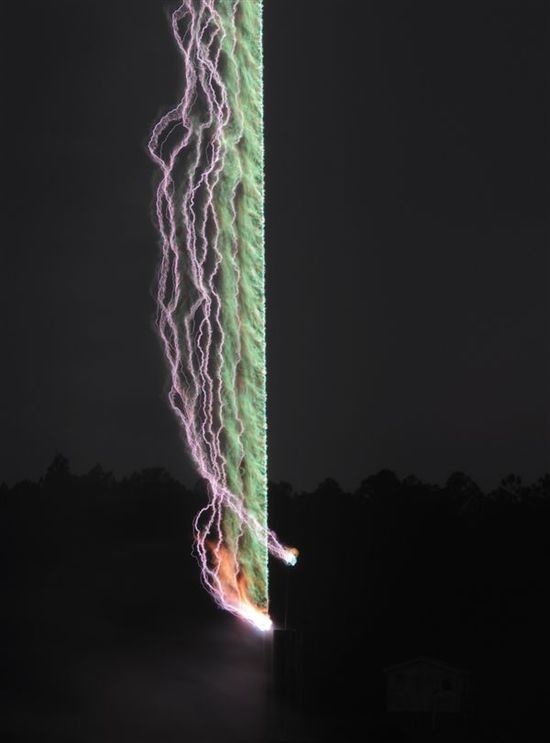 对一些人来说,霹雳和闪电是非常令人惊恐的。不过,对于佛罗里达州国际雷电研究中心的一个团队来说,它们是通过向风暴中发射火箭而被触发的研究对象。这种长时间曝光图像捕捉到的正是由研究人员触发的一次此类雷击事件的结果。