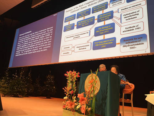 今天我极为荣幸能在卡罗林斯卡学院讲演,我报告的题目是:青蒿素——中医药给世界的一份礼物