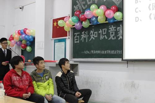 为提高大学生的综合素质,普及专业知识,拓展大学生视野。我院于2015年10月15日晚六时三十分在许昌学院A2楼A合5教室举办了知识百科竞赛活动,出席本次活动的有化学化工暨新材料与能源学院党支书记路运洪以及学生会副书记和学生会主席。