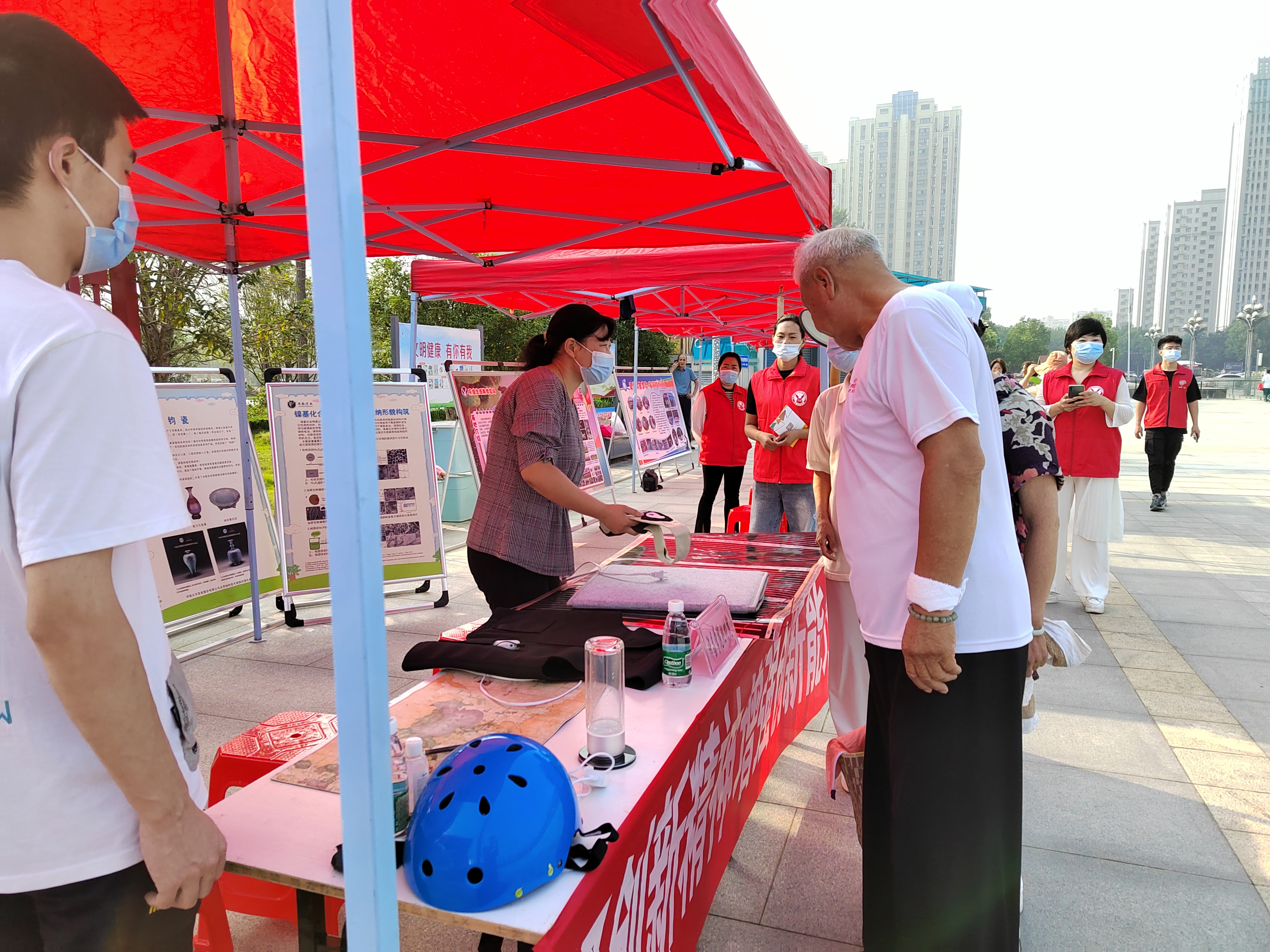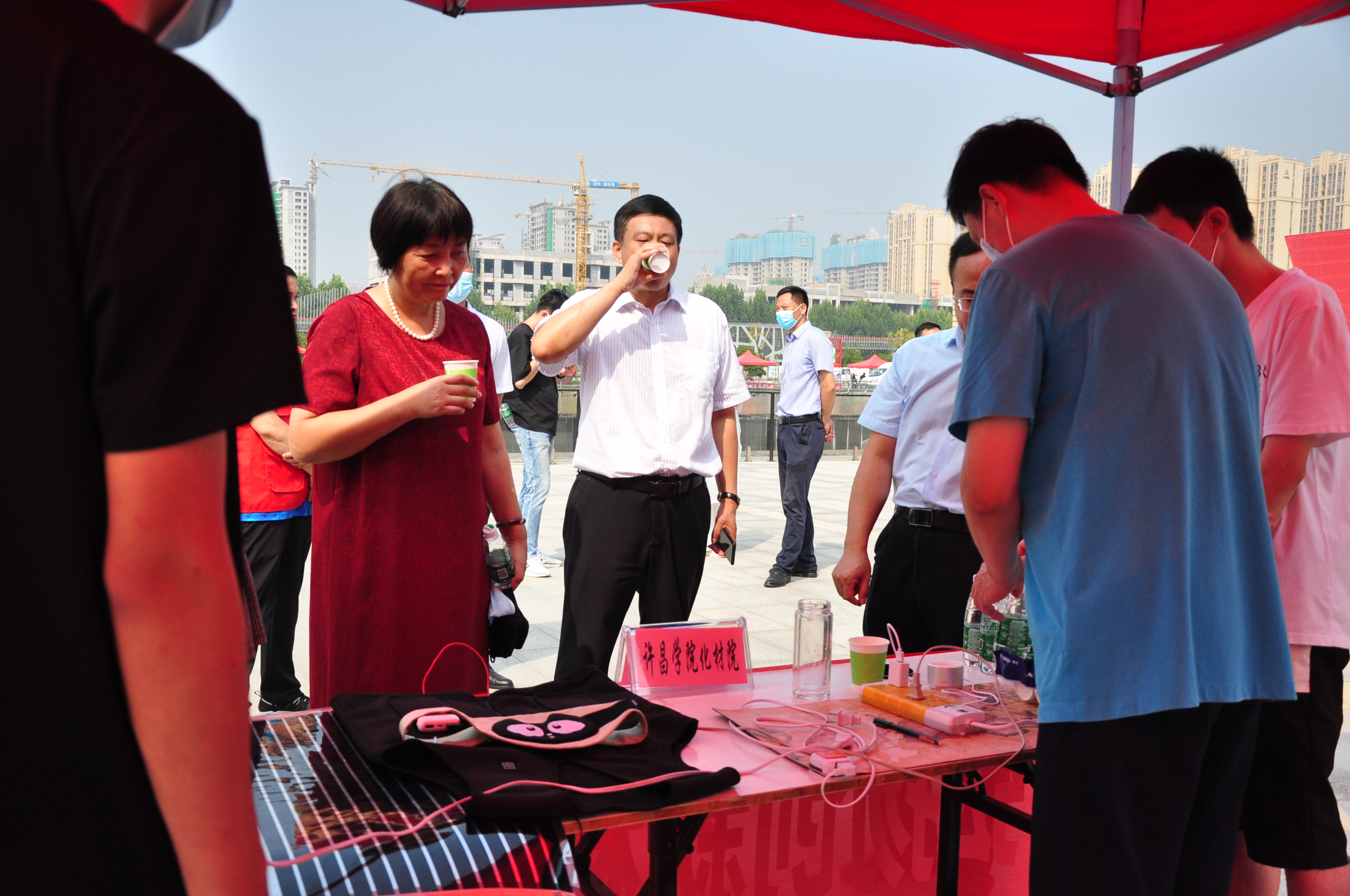9月15日,2021年许昌市全国科普日主场展示活动启动仪式在许昌市科技广场举行。许昌学院化工与材料学院河南省科普教育基地参加主场展示活动,其新材料、新能源领域的最新科研进展科普知识展板以及展出石墨烯电热保暖背心、鼠标垫、护膝等系列产品备受关注。许昌市委副书记马正兰、副市长李海峰、市科协主席田秋琴等领导出席2021年许昌市全国科普日主场展示活动启动仪式,并参观展区展品。