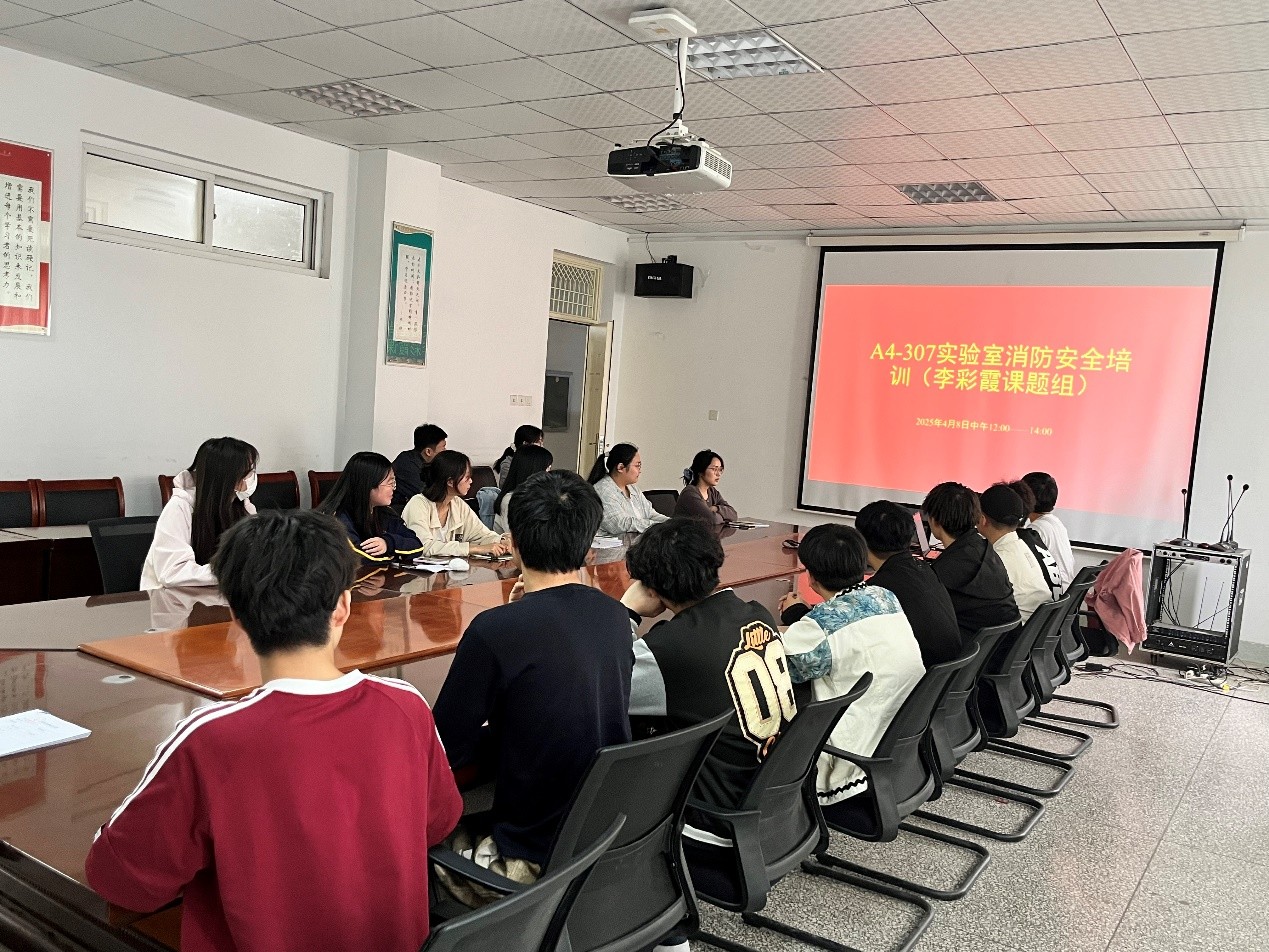 为进一步加强实验室安全管理,提升学生的消防安全意识与应急能力,化工与材料学院特色功能材料实验室(A4楼307室)于2025年4月8日中午12:00组织开展了实验室安全教育活动。
