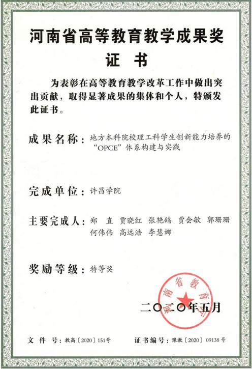 河南省高等教育教学成果特等奖