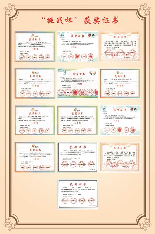 学生参加挑战杯学科竞赛部分获奖证书