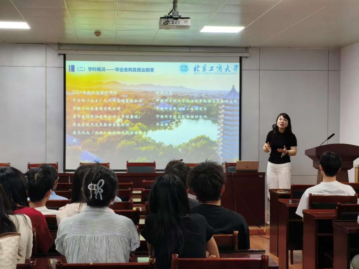 宣讲会由北京工商大学轻工科学与工程学院刘莉丽老师主讲。刘老师介绍了学校的历史沿革、学科特色及教学科研成果,详细解读了招生简章中的关键内容,包括报考资格、招生名额、学院的奖助体系等方面内容,耐心解答了同学们的疑问,让有意报考该校的同学们对学校有了更进一步的深入的了解。