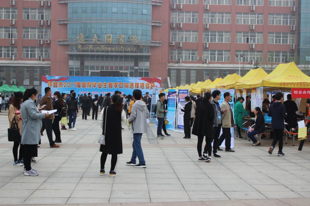 4月8日,我校与许昌市人力资源和社会保障局、许昌职业技术学院联合,在许昌学院弘毅广场举办了许昌市2017届高校毕业生春季双向洽谈会。