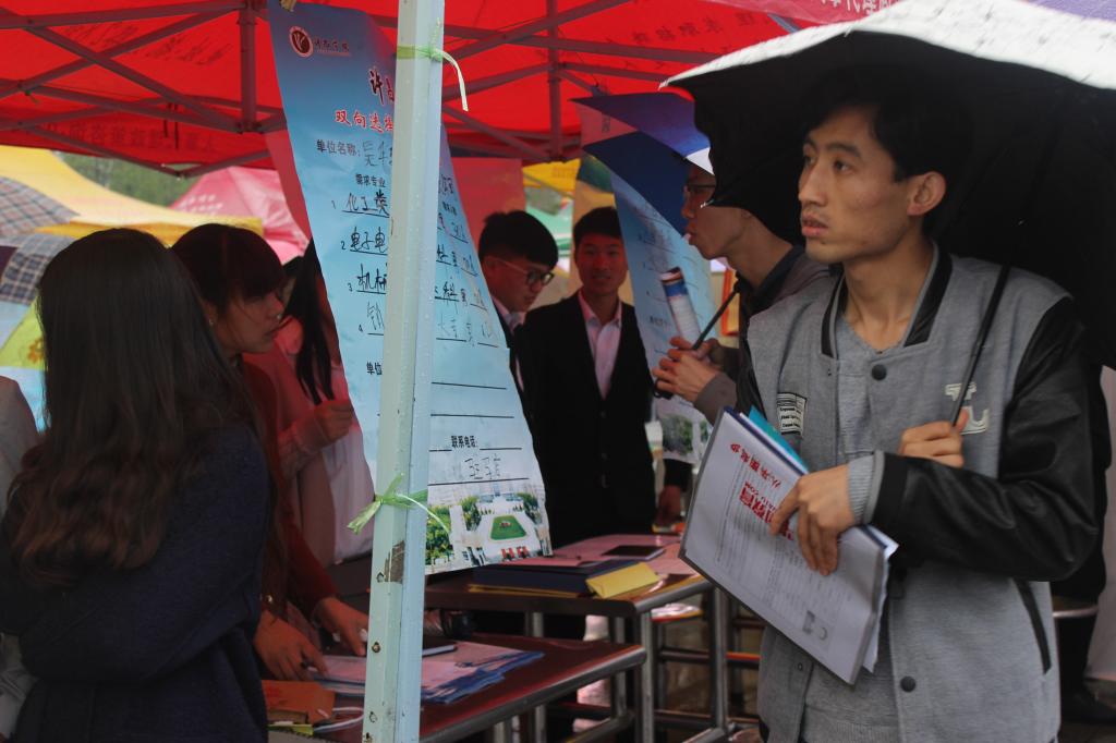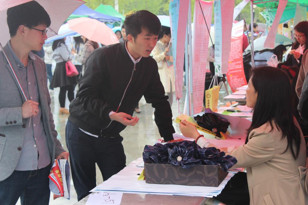 会前各院系积极的布置会场,纷纷推出本院系的展板,以供企业和用人单位更好的了解有关信息。而企业和用人单位也积极的回应,把一些实际,有效的信息以简短有力的形式提取出来以供学生们参考。现场秩序井然,人头攒动,多家用人单位前都挤满了前来咨询的学生。学生们认真的向用人单位了解工作内容、方式、薪资等问题,同时也结合自身的有利条件积极的推销自己。企业也积极的为咨询者介绍自己的单位,提供更多有用的信息。双方的讨论氛围也因人而异有的紧张,有的严肃,有的则是有说有笑各不相同。面对与日俱增的就业压力,有的同学脸上表现出了迷茫,但也有不少同学心态轻松平和,对找到好工作充满了信心。