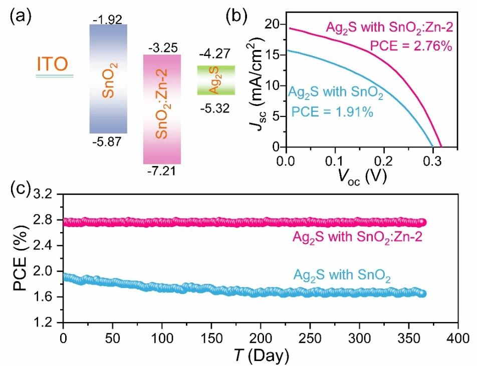 Ag2SSnO2:Zn电子传输层的能级结构及器件性能