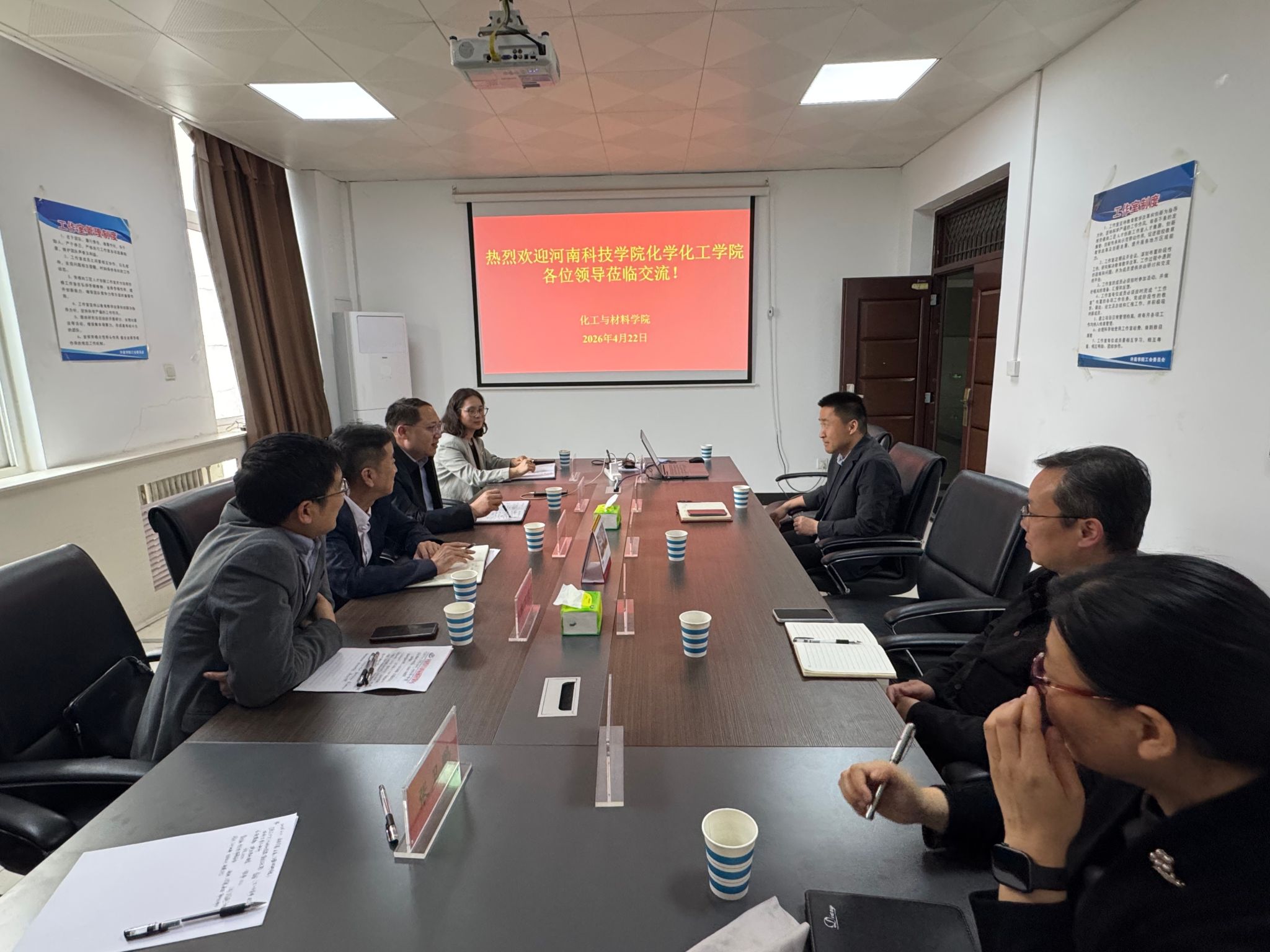 4月22日下午,河南科技学院化学化工学院党委书记许光日、执行院长杨理一行到访我院,围绕党建工作、学科建设、研究生培养、思政育人等重点工作开展深入交流。我院党委书记许志红,表面微纳米材料研究所所长、副院长何伟伟出席交流会。