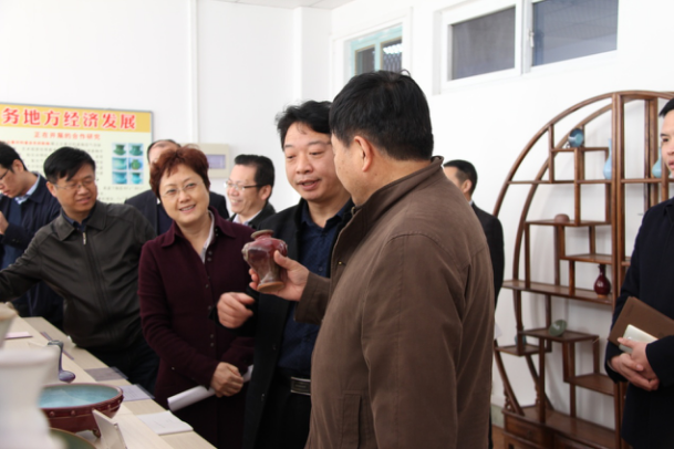 督导组在我校督查期间,到我院(所)察看了一楼大型仪器实验室。督导组成员认真询问了院(所)发展状况以及学生开学以来的工作情况。检查过程中,高远浩院长简要介绍了院(所)的基本情况,科学研究的方向和目前已取得的成果,并着重介绍了我们在服务地方经济所开展的产学研工作。在产学研展厅,督导组成员饶有兴趣地询问了纳米科技在钧瓷产业中的应用情况,并表示希望有机会可以跟相关的甘肃省高校开展学术交流活动。