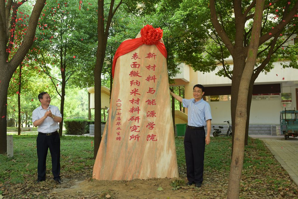 仪式上,13级材料科学与工程班班长元鹏强同学代表新材料与能源学院2017届全体毕业生追忆了大学四年里与母校共同成长的美好记忆,深深地表达了对母校对老师培养和教育的感恩之情。新材料与能源学院院长高远浩动容地说同学们对母校的眷念之情和感恩之心让老师们很感动,纪念石记录着每一位老师耕耘播撒的辛勤汗水,记录着每一位莘莘学子刻苦求学的成长印迹,是师生情缘永恒的见证。纪念石还象征着新材料与能源学院勤勉务实的工作作风和取得的丰硕果实,是材料人创意人生的“匠心石”。希望毕业生把许院正能量发扬光大,做一个真正“有材料”的人。