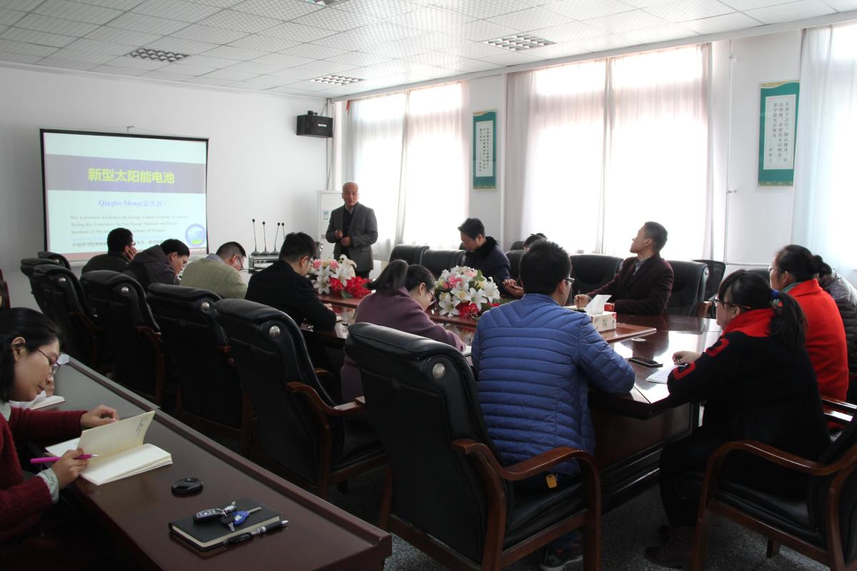11月24日上午,中国科学院物理研究所“百人计划”入选者,国家“杰出青年基金”获得者孟庆波研究员在许昌学院新材料与能源学院学术会议室做了题为“新型钙钛矿太阳能电池”的学术报告。院(所)教师、研究生和部分本科生参加了报告会,报告会由新材料与能源学院院长高远浩教授主持。