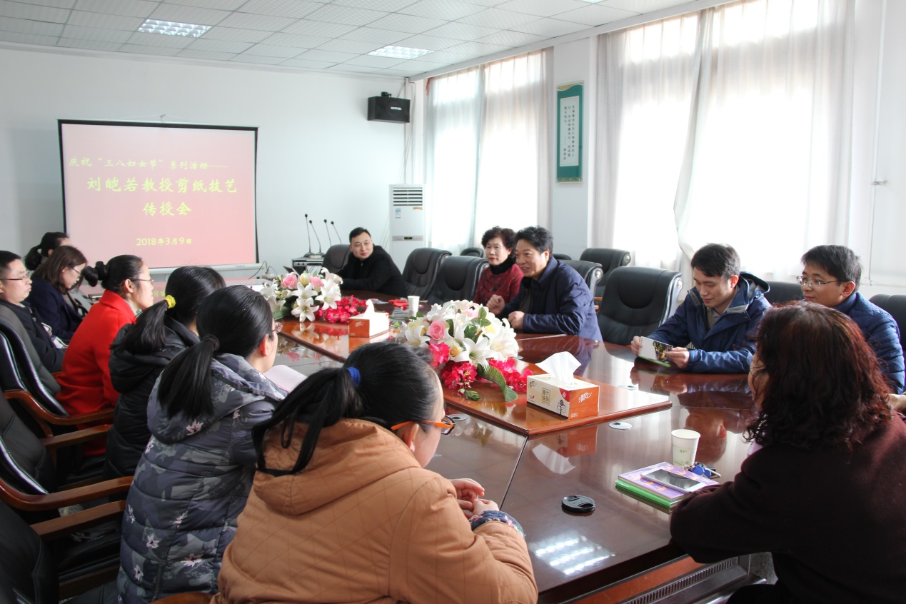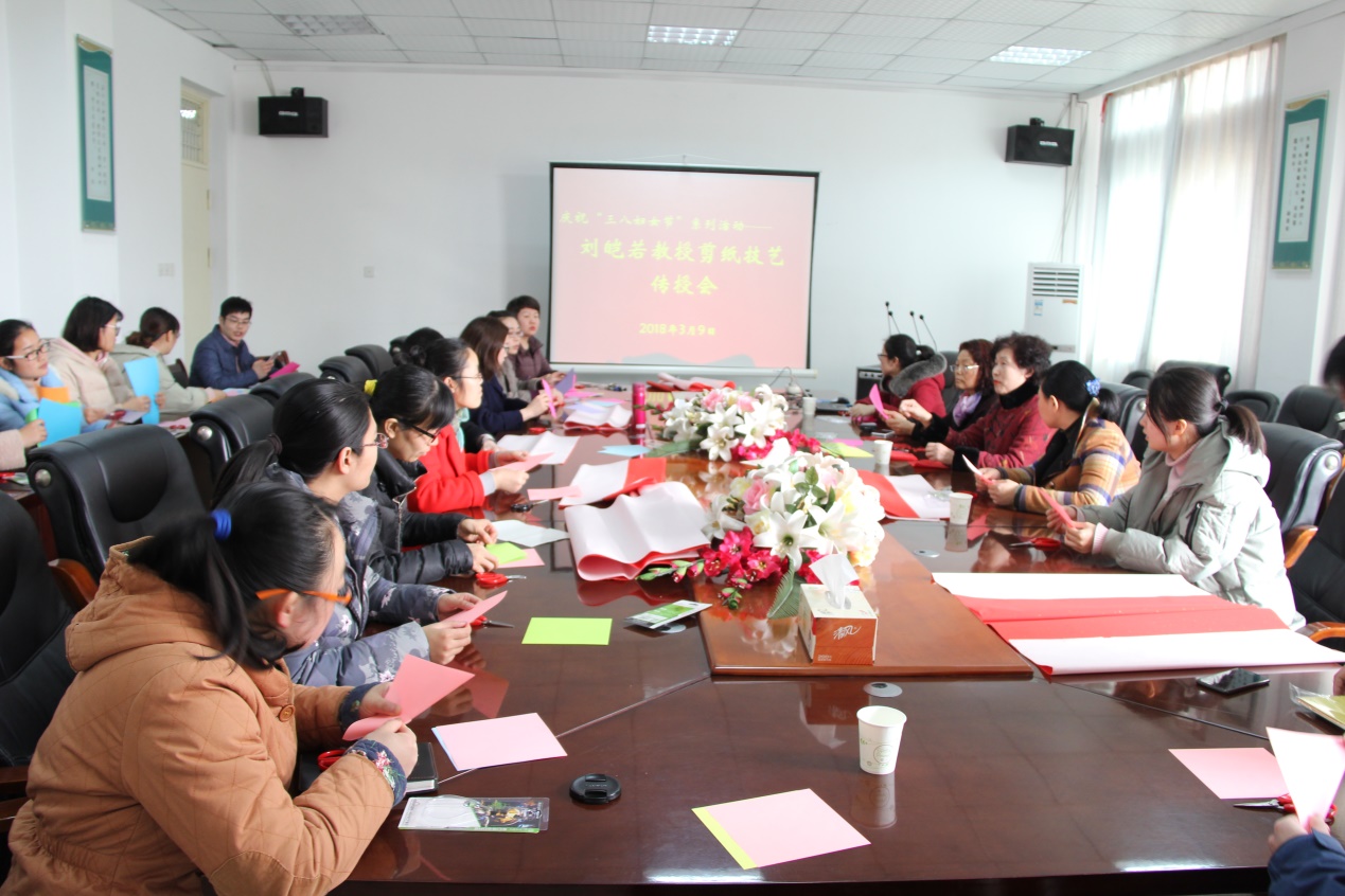 2018年3月9日,我院分工会举办了庆“三八妇女节”系列活动之——刘皑若教授剪纸技艺传授会。院(所)领导班子、全体女教师、部分男教师代表以及女学生代表参加了活动。会议由高远浩院长主持。