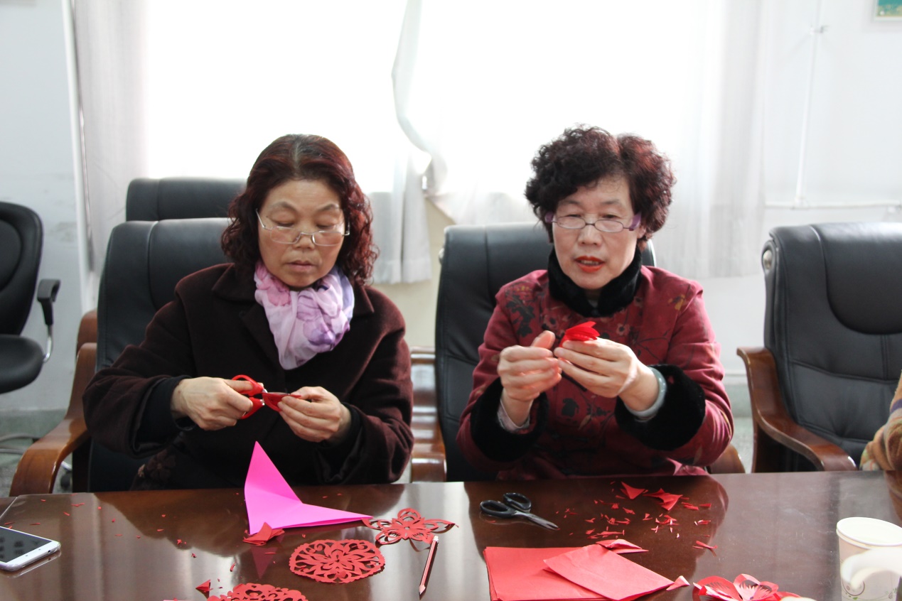 会上,高院长首先对院(所)发展做出了巨大贡献的全体女教工表示感谢并致以诚挚的节日祝福。高院长对刘皑若教授的到访表示热烈欢迎,随后向参会师生简要介绍了刘教授在文化传承方面的造诣并对刘教授百忙中拨冗传授大家剪纸技艺表示感谢。会上,刘教授向大家讲解了剪纸艺术的历史、发展历程、剪纸种类以及剪纸文化的发展趋势。会上,刘教授亲自示范,手把手教授大家剪纸技巧将活动推向了高潮。参会师生在刘老师的悉心指导下,纷纷拿起剪刀饶有兴趣地剪下了人生第一个剪纸作品。一个个生动美丽的 “梅花”、“桃花”、“双喜”映衬着大家的笑脸。