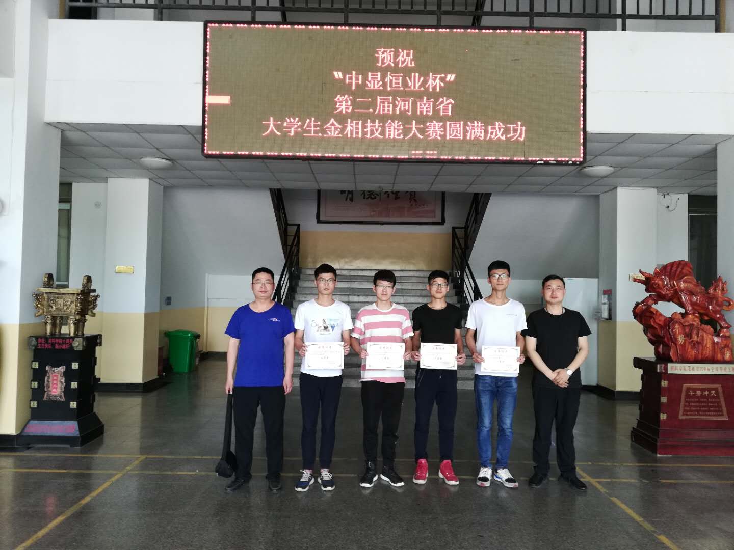 2018年6月22日到24日,由河南省机械工程学会主办、河南理工大学承办的河南省第二届“中显恒业杯”大学生金相技能大赛在焦作举办。来自郑州大学、河南科技大学、河南理工大学、许昌学院等16个院校参加比赛,新材料与能源学院(表面微纳米材料研究所)吕金洲副书记带队参加比赛,经过激烈角逐,我院4名本科生喜获一等奖1名、三等奖3名的佳绩。梁玮、蔡拓两位博士被评为优秀指导教师。