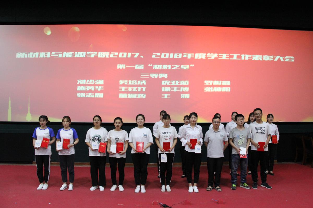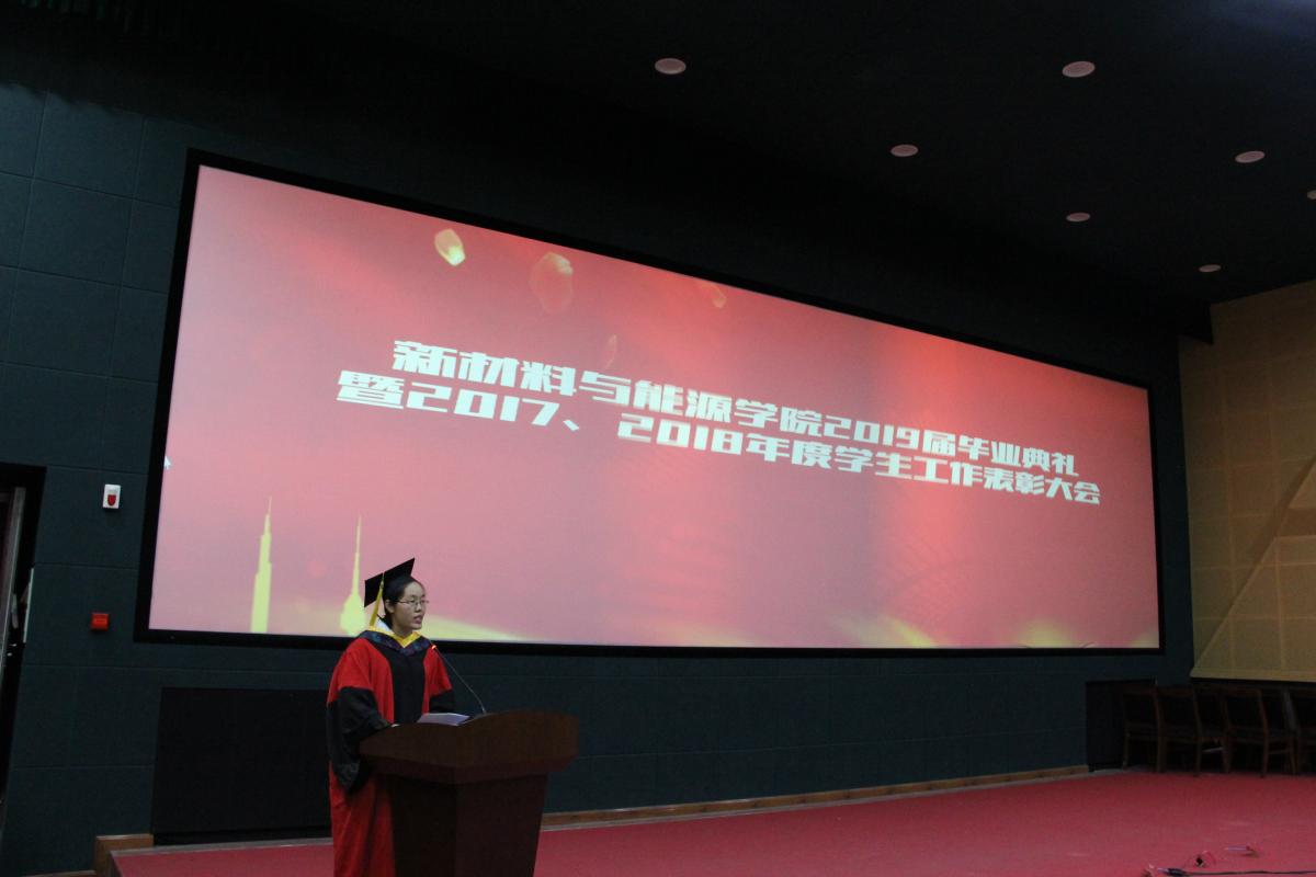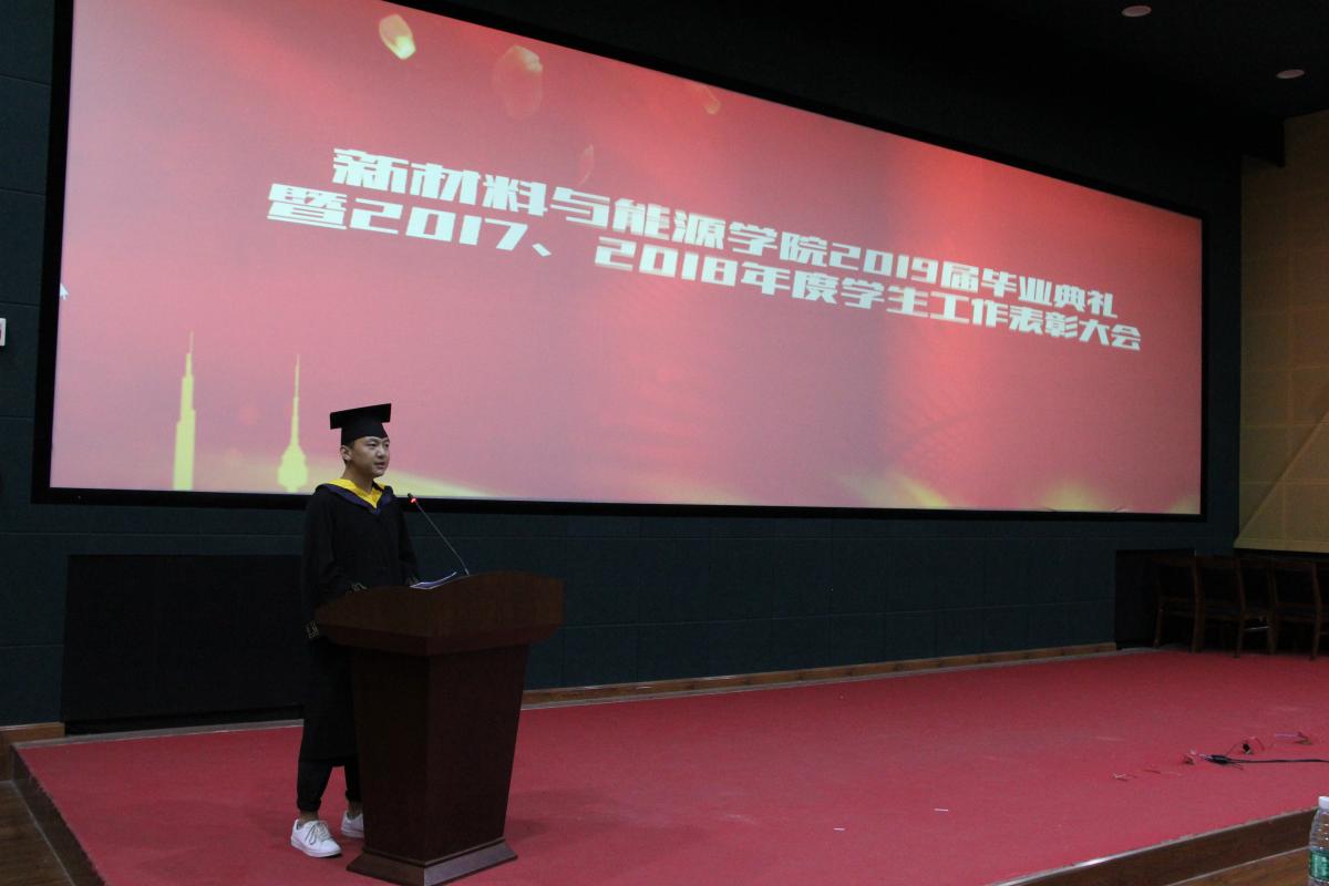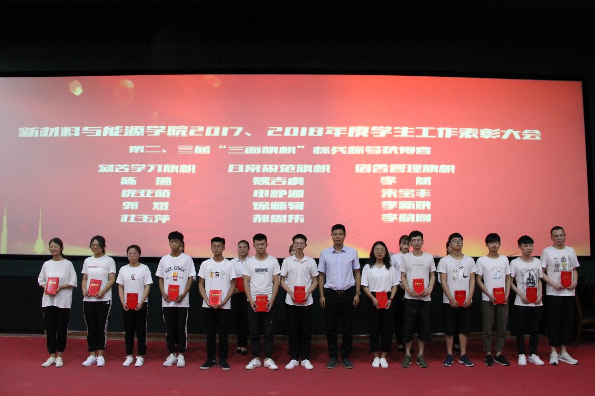 典礼仪式上,副校长郑直宣读了《新材料与能源学院2017、2018年度学生个人和集体受表彰情况通报》。