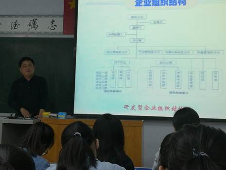 2018年10月10日,河南豫辰药业股份有限公司傅收总经理在C楼302教室为化学化工学院18级新生化学工程与工艺和制药工程专业学生授课,主讲专业导论第二讲,并做了题为《化工制药企业组织结构及岗位职责》的讲座。本次讲课由张艳鸽副院长主持,制药系鞠志宇、化工系孙国富主任全程参与。