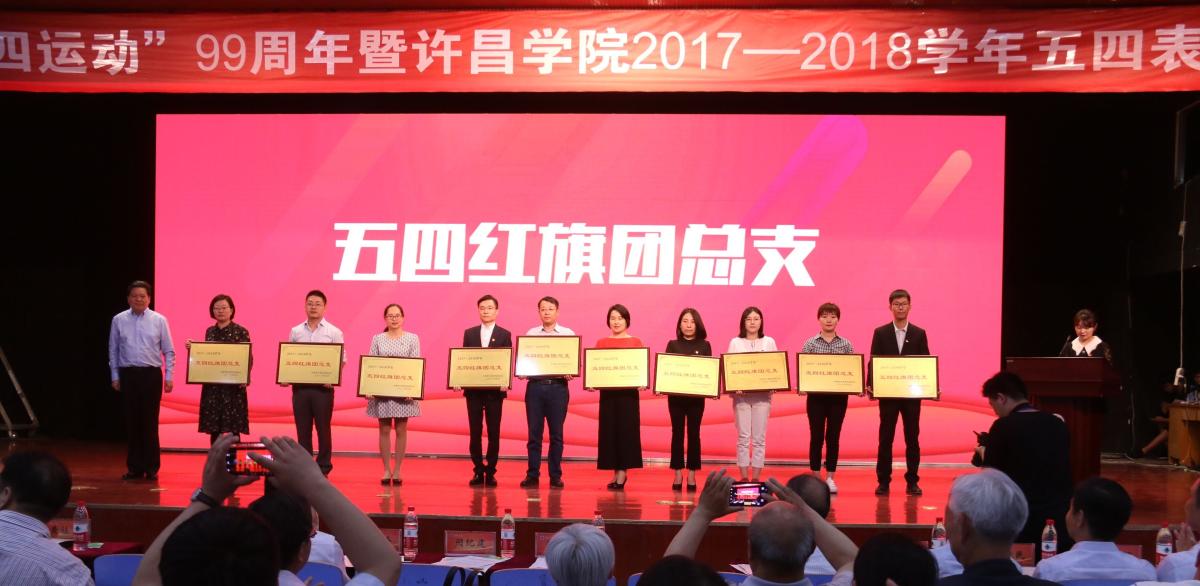 在五四青年节来临之际,我校开展了纪念“五四运动”99周年暨许昌学院2017-2018学年五四表彰大会。代表我院参加此次活动的有党总支书记许志红,党总支副书记张学燕,团总支书记易文翰及部分学生代表。本次会议由团委书记谢依楠主持。