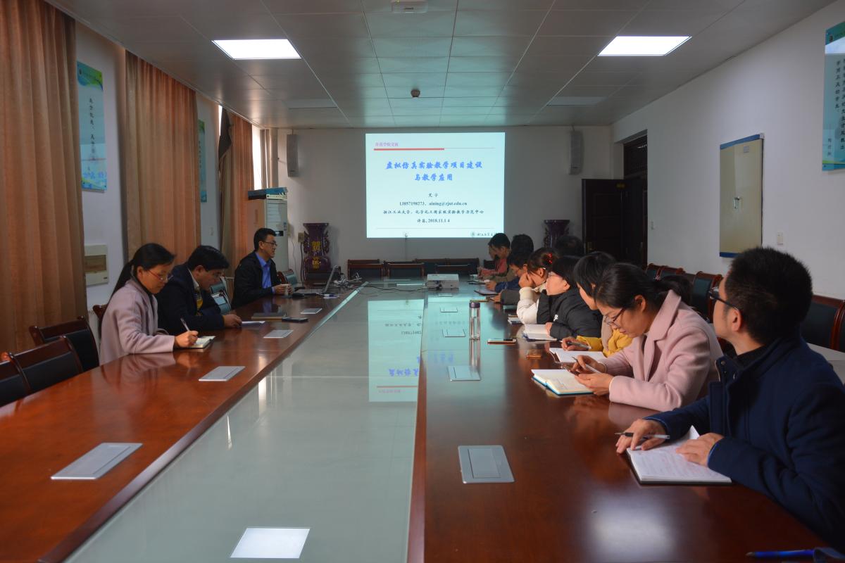 为进一步推进国家级虚拟仿真实验教学项目的申报、建设与教学应用,完善符合工程教育专业认证的人才培养方案,2018年11月14日我院邀请浙江工业大学研究生院副院长,国家级化学化工虚拟仿真实验教学中心(浙江工业大学)常务副主任、浙江工业大学艾宁教授在化学化工学院会议室做了“虚拟仿真实验项目建设与教学应用”的精彩讲座,教务处,设备管理处,医学院和我院相关教师到会并参加了交流。