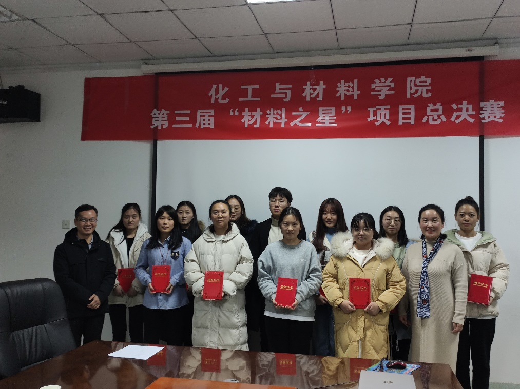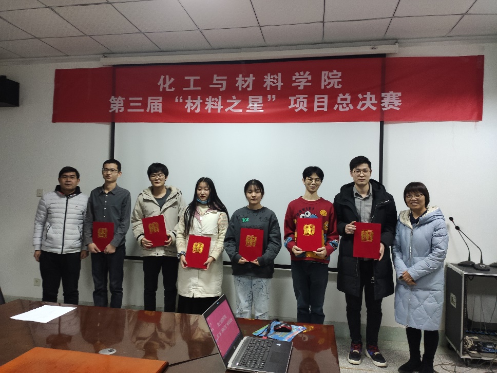 2021年1月6日,化工与材料学院第三届“材料之星”项目总决赛在A4-301隆重举行,化工与材料学院专业教师代表作为评委,经过紧张激烈的答辩,公平、公正、公开评出一等奖6名、二等奖11名。化工与材料学院许志红书记、张艳鸽院长、张学燕副书记及李品将副院长为本次获奖的“材料之星”选手颁奖。“材料之星”项目是我院强化内涵提升、深化科研与教学改革创新、贯彻 “OPCE”人才培养模式的重要载体,是应用型人才培养的积极实践与探索,是“OPCE”培养体系的重要组成部分。