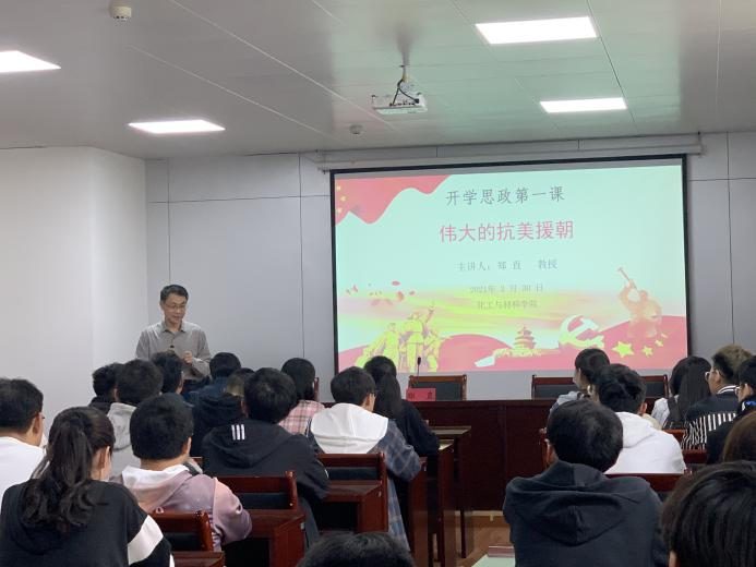 2021年3月30日下午,我校副校长郑直教授应邀为我院师生进行《伟大的抗美援朝》——春季开学思政第一课讲座。本次讲座由我院党委书记许志红主持,部分师生代表参加。