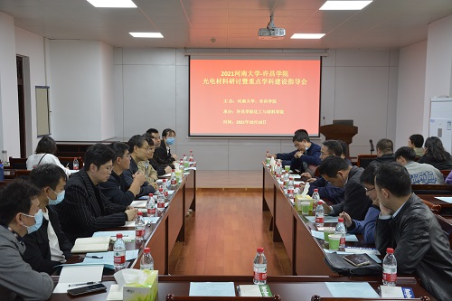 10月10日,2021河南大学-许昌学院光电材料研讨暨重点学科建设指导会在许昌学院化工与材料学院S302会议室举行,河南大学傅声雷副校长、材料学院杜祖亮院长和教育部特种功能材料重点实验室的专家学者和我院师生就光电材料和重点学科建设进行了研讨。