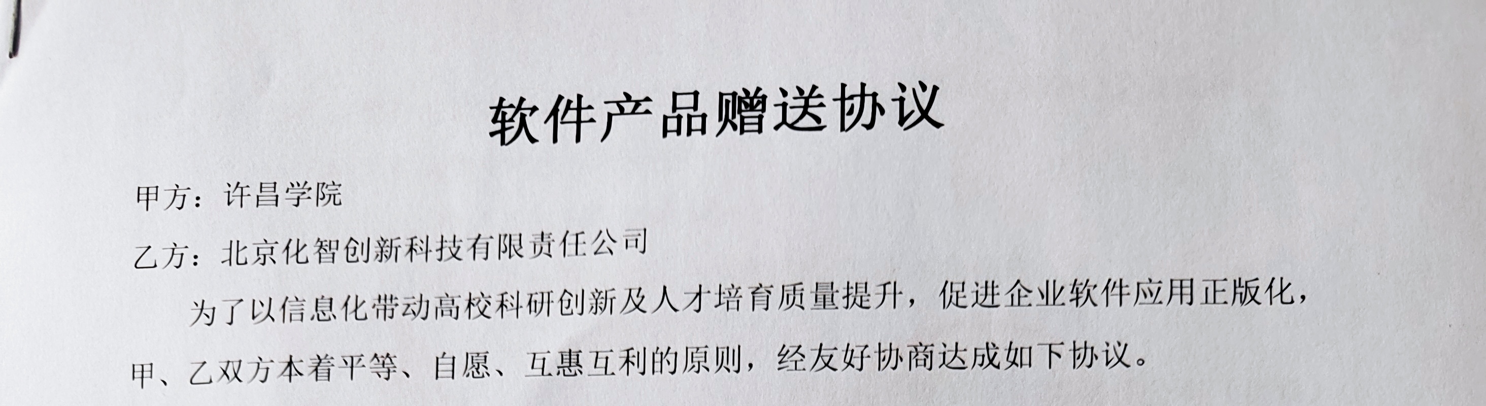 2022年11月22日,北京化智创新科技有限责任公司向我院捐赠科研软件,捐赠人为我院2010级优秀校友---北京化智创新科技有限责任公司负责人刘少华,我院院长张艳鸽代表学校接受捐赠。