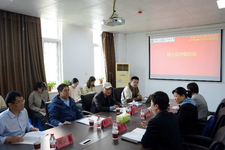 论证会上,按照许昌学院和河南大学联合培养博士后开题报告要求,许昌学院博士后创新实践基地马敏智博士从研究课题的选题意义、国内外研究现状、研究内容的创新性、拟解决的关键科学问题、研究方案与技术路线、研究基础、年度计划及预期成果等方面进行了详细汇报。