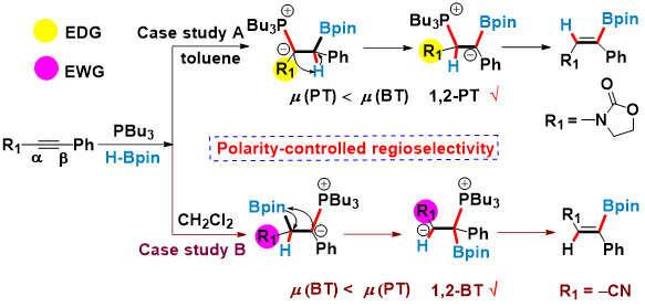 图1 PBu3催化不同取代基炔烃硼氢化反应的策略