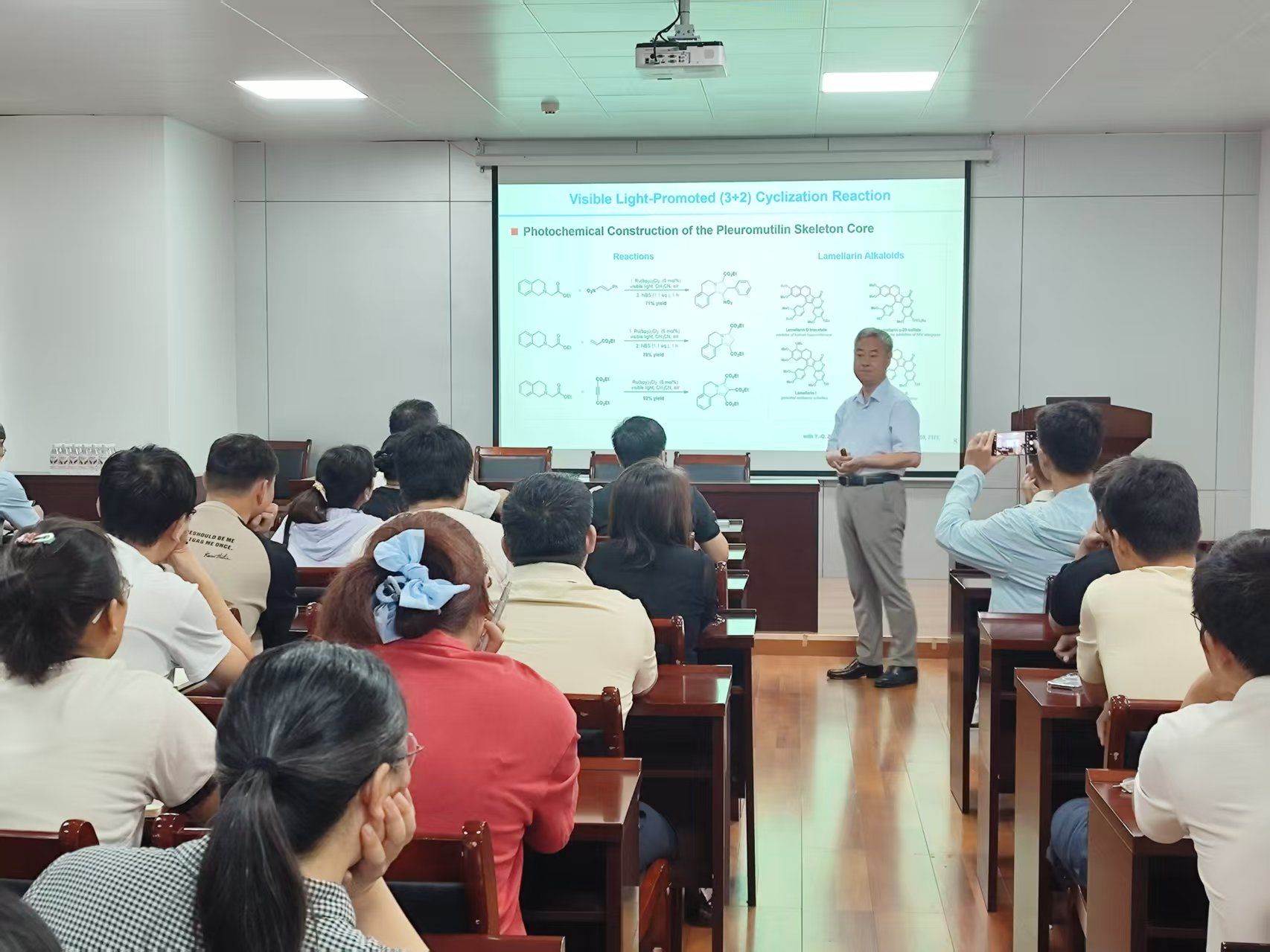 7月21日上午,华中师范大学化学学院院长、武汉光化学技术研究院院长肖文精教授应邀来我院作题为“催化不对称的有机光化学反应初探”的学术报告。报告会由我院党委书记许志红教授主持,许昌学院校长郑直及学院相关领域教师、联合培养研究生参会交流。