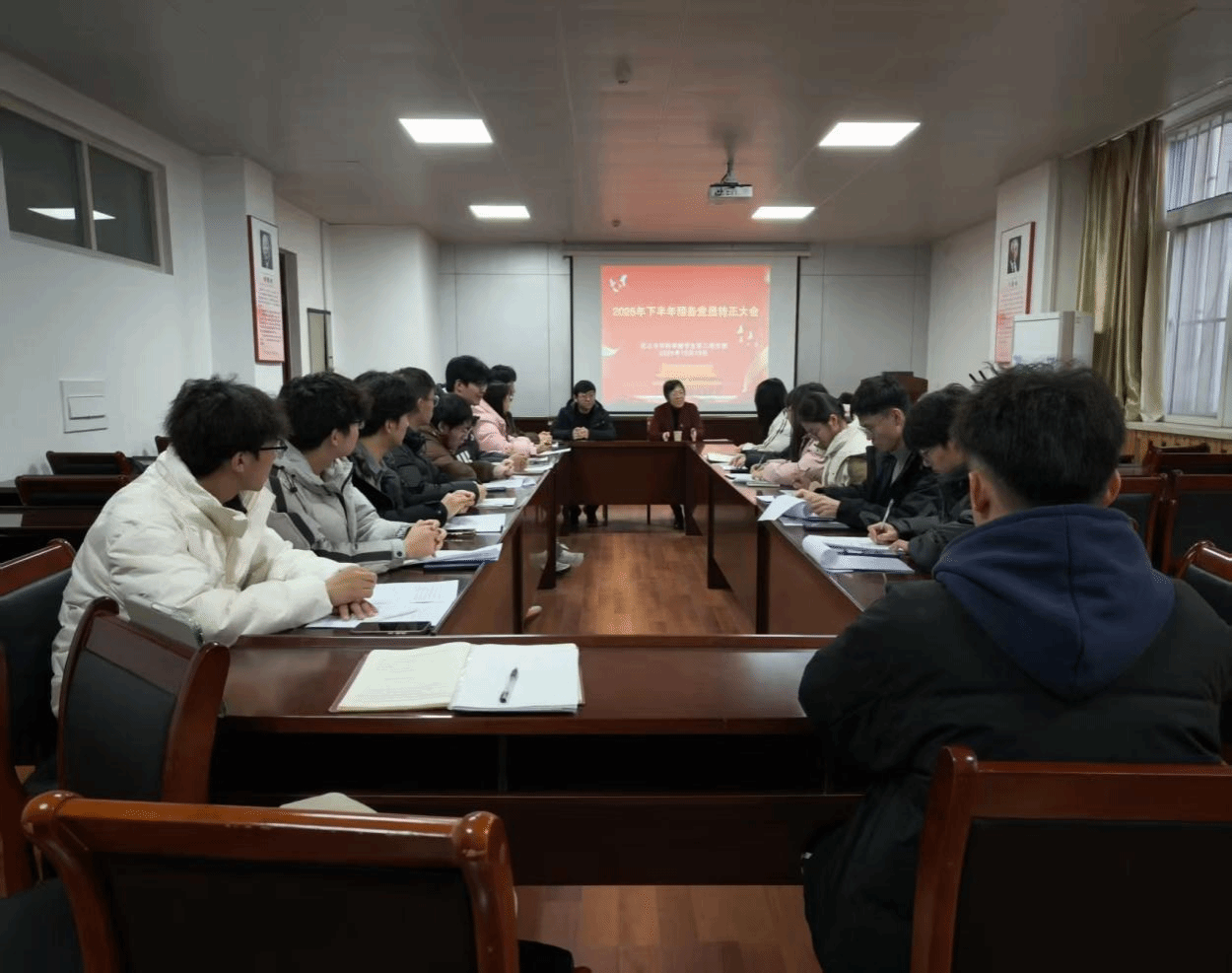 2025年12月13日,我院学生第二党支部在化材楼S302及线上腾讯会议同步召开2025年下半年预备党员转正大会,本次会议由牛景锐老师主持,特聘学生党建组织员崔凤巧同志、党支部书记王濛濛老师,支部全体党员参会。