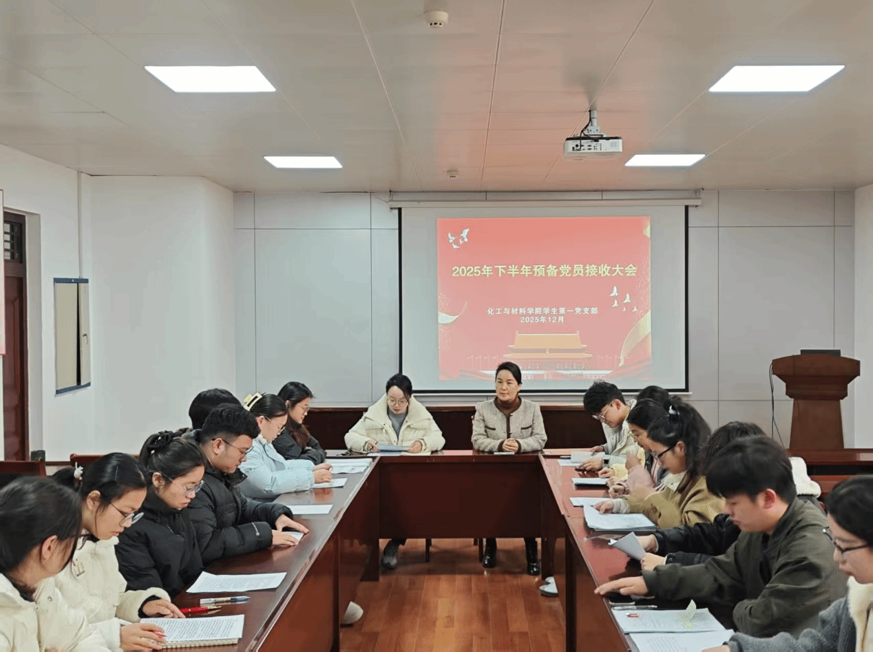 2025年12月13日,我院学生第一党支部在化材楼S302及线上腾讯会议同步召开2025年下半年预备党员接收大会,本次会议由张东琳老师主持,我院党委副书记张学燕、支部书记胡泊及支部全体学生党员参会。