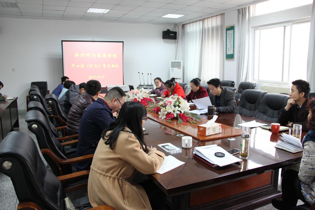 11月17日下午,新材料与能源学院召开中心组(扩大)学习会议,结合工作实际,深入学习宣传党的十九大精神。院(所)领导班子成员和全体教职工参加了会议。会议由党总支书记崔凤巧主持。