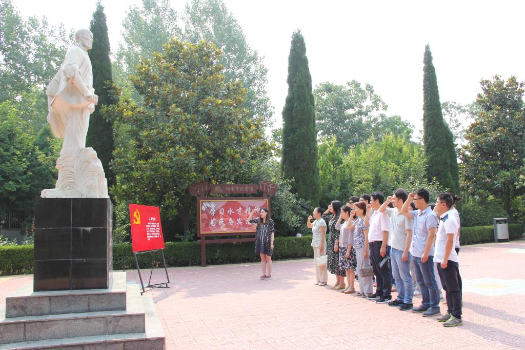 为深入开展“两学一做”学习教育,6月16日上午,新材料与能源学院党总支组织全体党员教师到许昌市建安区桂村乡杨水才纪念馆参观学习,缅怀党的好干部杨水才同志,重温入党誓词,重塑党性修养。