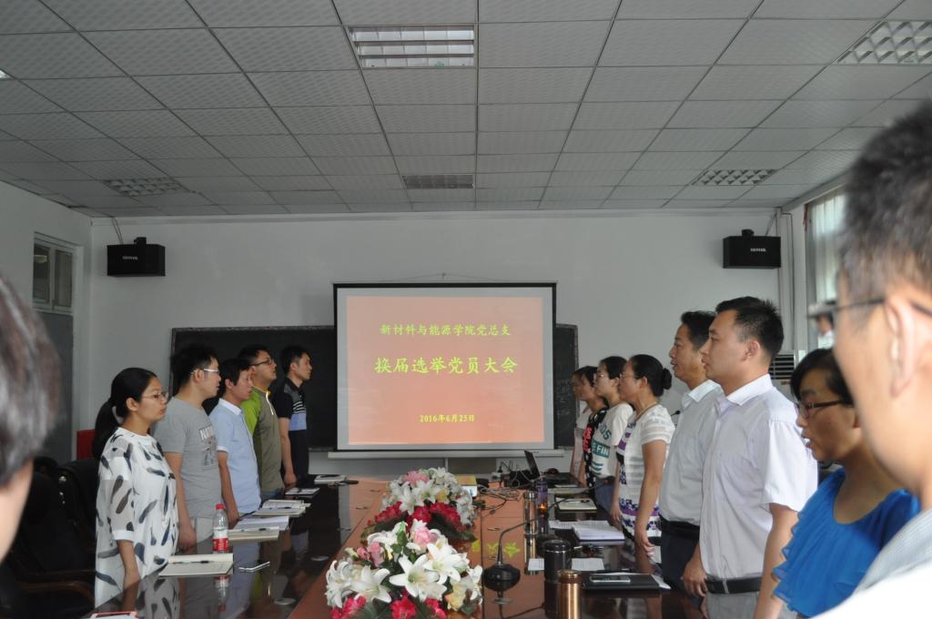 会议开始,首先全体起立奏唱国歌。接着,崔凤巧书记代表学院党总支作了《新材料与能源学院2013-2016年党总支工作总结》,回顾了三年来院系的思想建设、制度建设、教师培训、学生管理、实验室改革等多方面工作。然后结合我院情况,对学生的学习教育、实验操作等方面也给予了中肯的评价。书记同时指出不能小富即满,停滞过去,并对学院对今后的学生教学工作、教师知识更新工作、办公管理工作、实验室改进工作以及学生入党积极分子培训“旗航”党建品牌等工作提出了全面的思路和构想。其中强调,工作开展的最根本是以中国特色社会主义道路以及习近平总书记系列重要讲话为指导,党的基层组织是党的全部工作和战斗力的基础。党的基层组织必须按期进行换届选举,促进学院发展为己任,积极奋进,努力拼搏,迎接未来。
