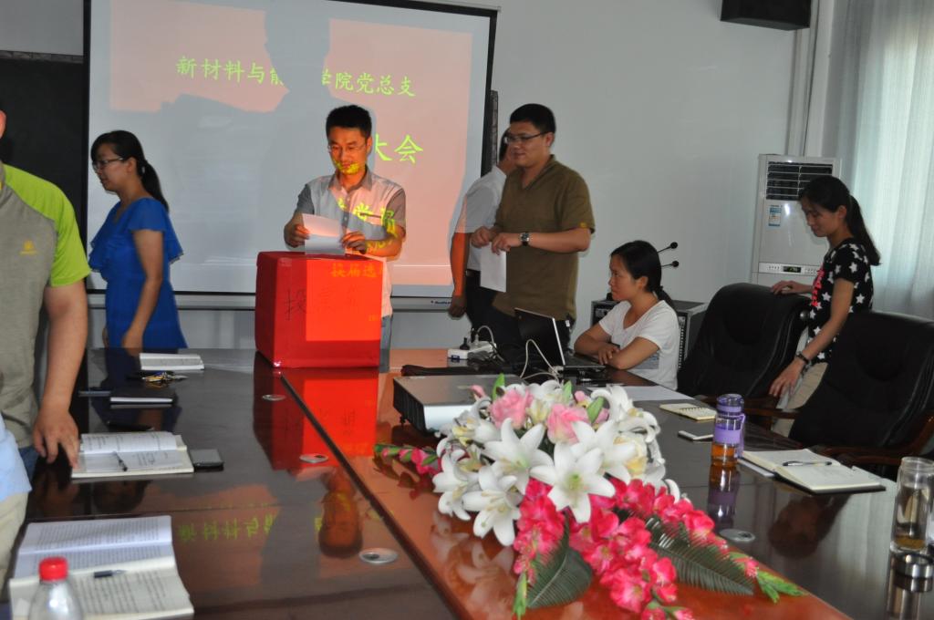 6月25日下午,我院全体师生党员在纳米所三楼会议室召开基层党组织换届选举党员大会,选举新一届党总支委员。会议由党总支副书记吕金洲主持,学院29名党员参会,有表决权的党员18名。