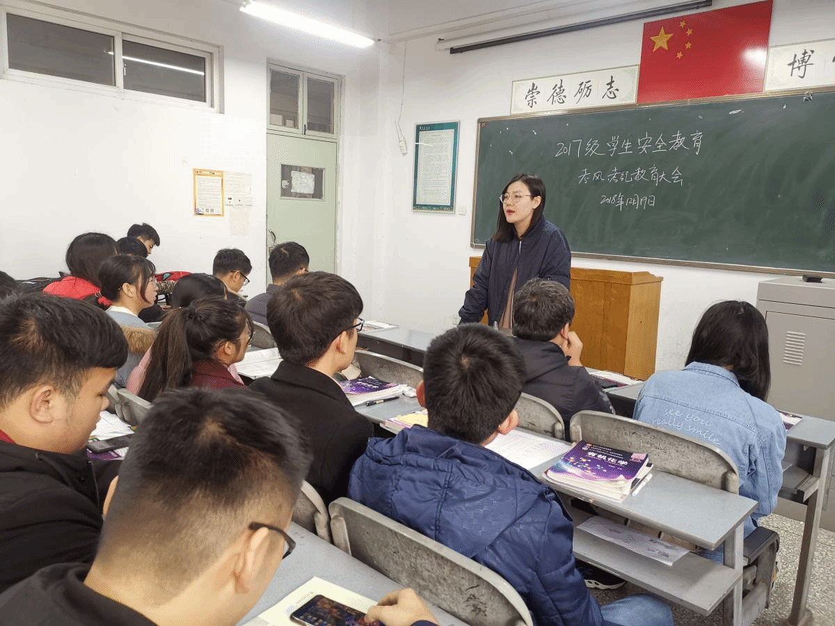 12月19日,我院于A4楼405召开学生安全教育和考风考纪教育大会,我院团总支副书记于笑寒主持,17级全体学生参会。