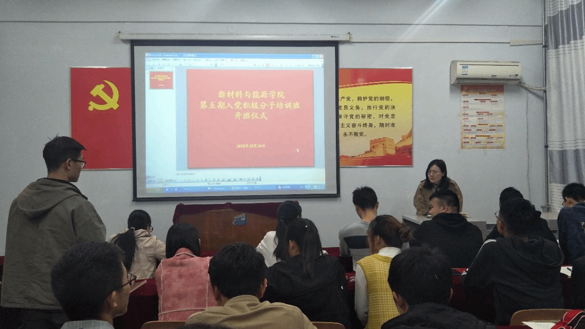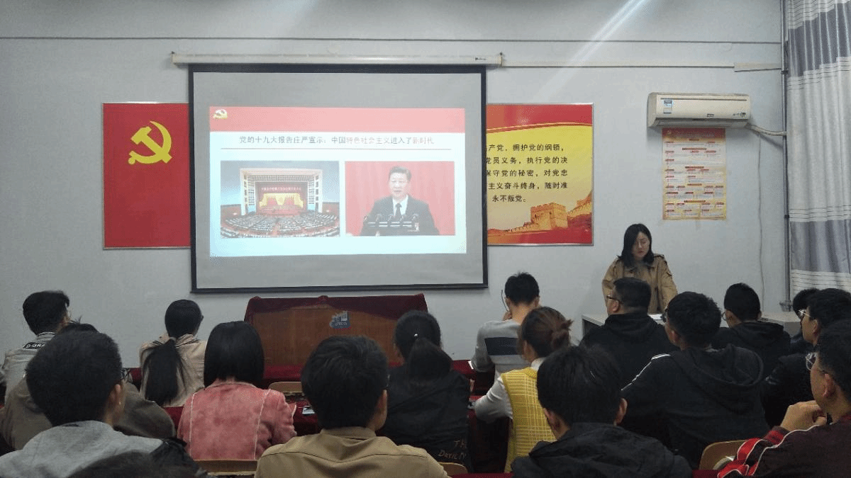 10月26日,在我院党团活动室,学生党支部书记于笑寒以“辉煌新时代,青春勇担当”为主题给我院第五期入党积极分子进行了培训。