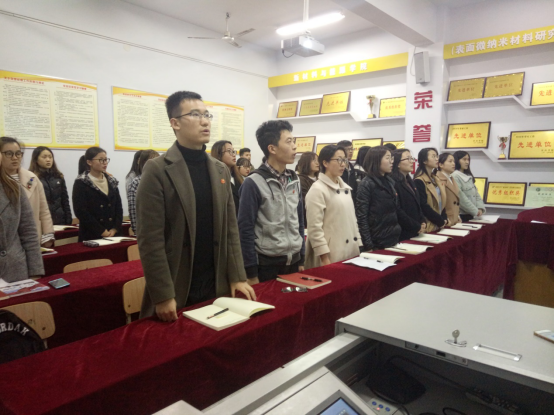 会议临近结束时,全体起立,共唱国际歌。这次会议在庄严雄浑的国际歌旋律中接近尾声,此次的宣誓大会不仅是新党员同志的新起点,也是对入党积极分子同学们的激励,更是大家的一次具有特殊意义的学习之旅。