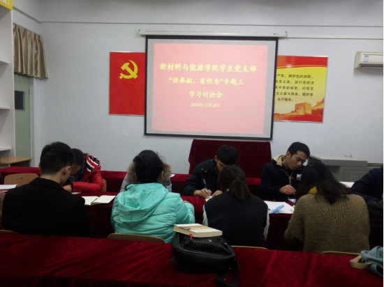 为夯实“两学一做”学习成果、营造争做“四讲四有”合格党员的良好氛围,我院学生党支部组织全体学生党员于2016年12月26日在党团活动室召开“讲奉献、有作为”专题学习讨论会。学生党支部书记于笑寒同志、15及16级辅导员周婷婷老师参加了此次会议。