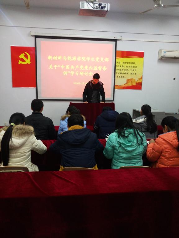 中国共产党第十八届中央委员会第六次全体会议于2016年10月27日通过了《中国共产党党内监督条例》(以下简称《条例》)。为了更好地学习践行有关精神,11月28日晚7点,我院学生党支部全体成员在党团活动室召开了关于《条例》的学习研讨会。