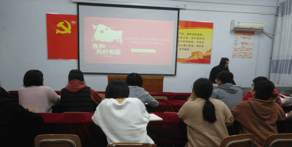 10月16日下午,新材料与能源学院学生党支部书记于笑寒在A4四楼党团活动室向全体学生党员讲授以“我和我的祖国”为主题的党课。全体学生党员参加。
