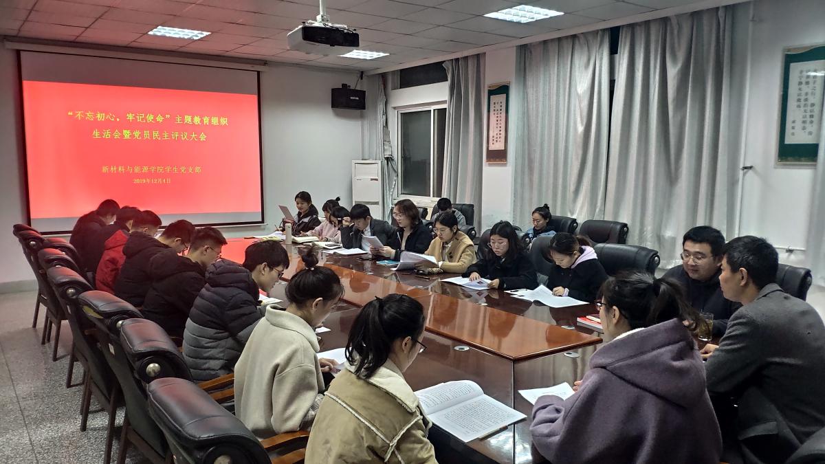12月4日上午,新材料与能源学院学生党支部召开“不忘初心、牢记使命”专题组织生活会暨民主评议党员大会。会议由学生党支部书记于笑寒主持,党总支副书记李立夏、学生支部全体党员参加。