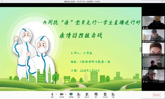 李玉星同志给19级纳米2班学生讲解了疫情防疫小知识和大学生正确的行为方式,王学敏同志给17级新能源1班学生讲述了疫情期间大学生的责任与担当,朱宝丰同志和17级材料1班的同学们针对“防止疫情扩散我们如何做好防护?”展开讨论,刘伟娟同志带领17级纳米1班同学们回顾了最美逆行者的事迹。各位带班党员通过自己的力量,引导同学们以正确的心态、合理的行为方式对待此次疫情。活动结束后,同学们纷纷表示要积极配合学校和学院的疫情防控工作安排,主动劝告周围亲朋好友积极配合当地防疫工作,积极通过官方渠道了解相关疫情情况,不信谣不传谣。