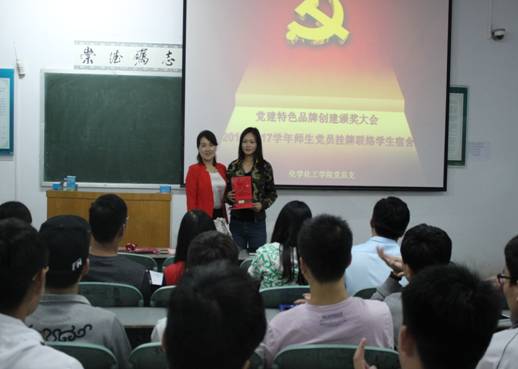 为营造我院积极向上的良好氛围,加强对学生的思想引领,化学化工学院开展了师生联点党建特色品牌活动,并于2017年6月5日下午5:30在C-104举行颁奖大会。化学化工学院党总支副书记张学燕、辅导员胡泊、胡晶及部分学生党员代表、16级连点宿舍负责人、寝室长参加本次活动。本次活动由胡泊老师主持。