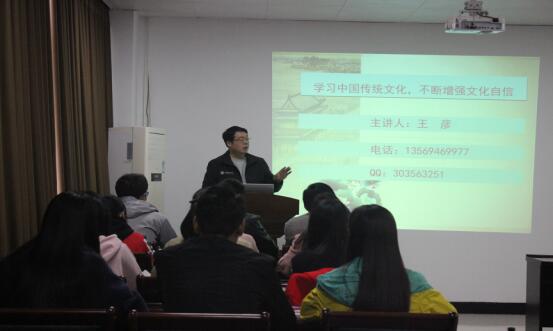 11月11日上午八点,党校第一课由王彦老师主讲,王彦老师以“学习中华传统文化,不断增强文化自信”为主题,从文化定义、结构、层次入手,剖析“文化”两字的深层次意义。紧接着,王彦老师对中国传统文化与西方文化从三个方面进行比较:集体主义与个人本位、“乐”感文化与“罪”感文化、求善与求真。他提到文化的核心为哲学与宗教,从宗教引申出中国传统文化的核心为阴阳五行思想。“道家养生、儒家修德”以及中华文化的核心理念,使同学们更加坚定“四个自信”。
