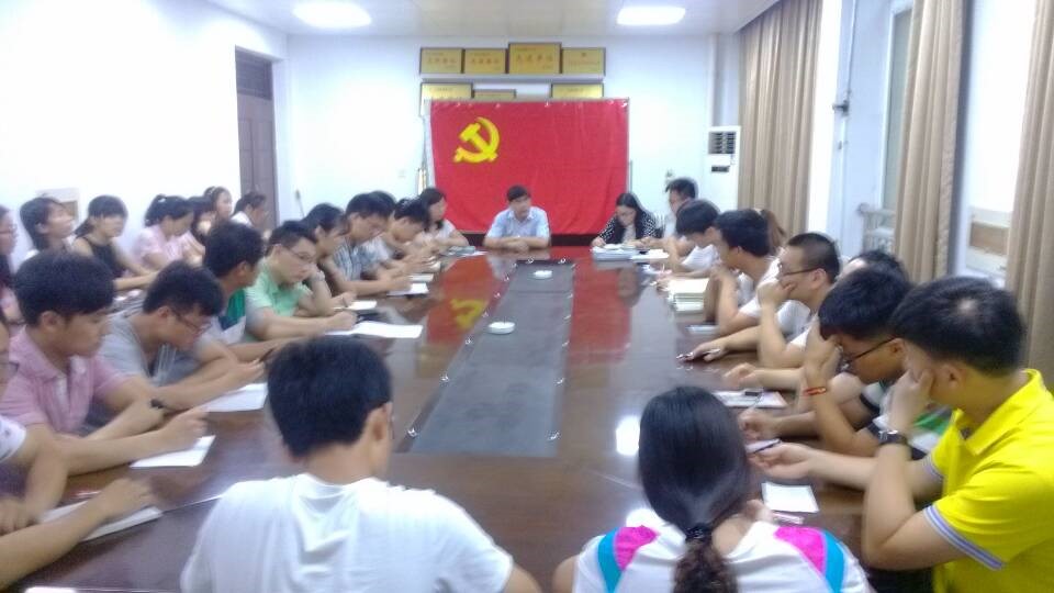 2015年6月16日在化学化工学院会议室举行预备党员转正及积极分子发展大会。出席会议的老师有化学化工学院党总支副书记许志红老师、及辅导员胡泊老师、于笑寒老师。会议主题为张聪等12名预备党员发转为正式党员;黄星航等11名党员发展对象发展为预备党员。